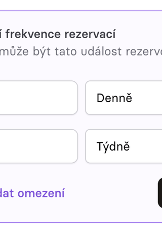 - Omezení příchozích rezervací: Kontrolujte jak často může účastník rezervovat vaše události.